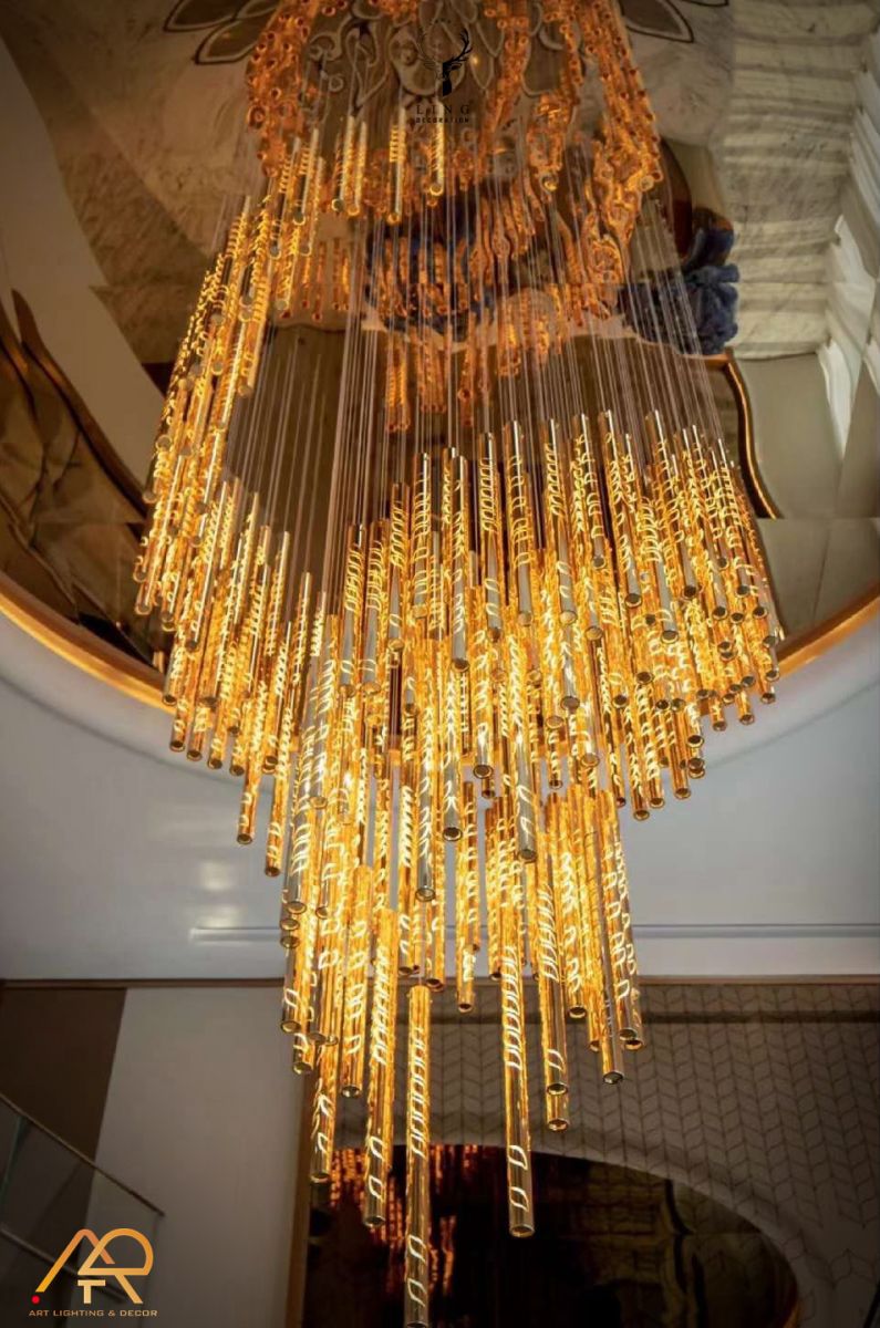 Đèn thông tầng là một yếu tố thiết kế quan trọng, không chỉ mang lại ánh sáng cho không gian mà còn tạo điểm nhấn thẩm mỹ cho phòng khách, đặc biệt là những không gian có trần cao.Việc lựa chọn đèn phù hợp cần cân nhắc kỹ lưỡng về kiểu dáng, kích thước, ánh sáng và phong cách thiết kế để tạo nên không gian ấn tượng và hài hòa. Dưới đây là những chia sẻ từ các chuyên gia khi lựa chọn đèn thông tầng: