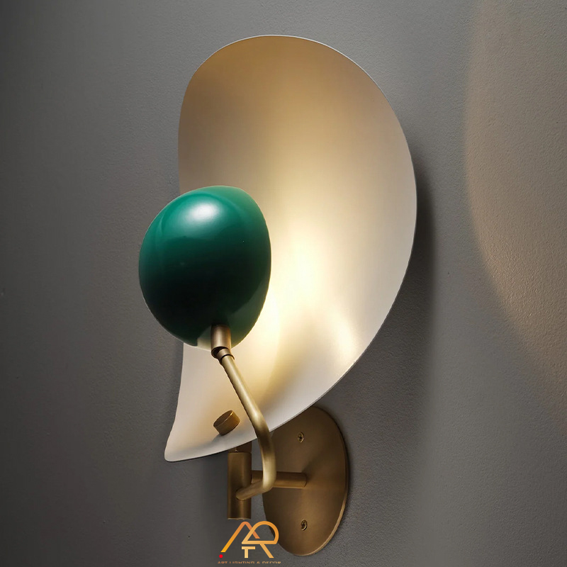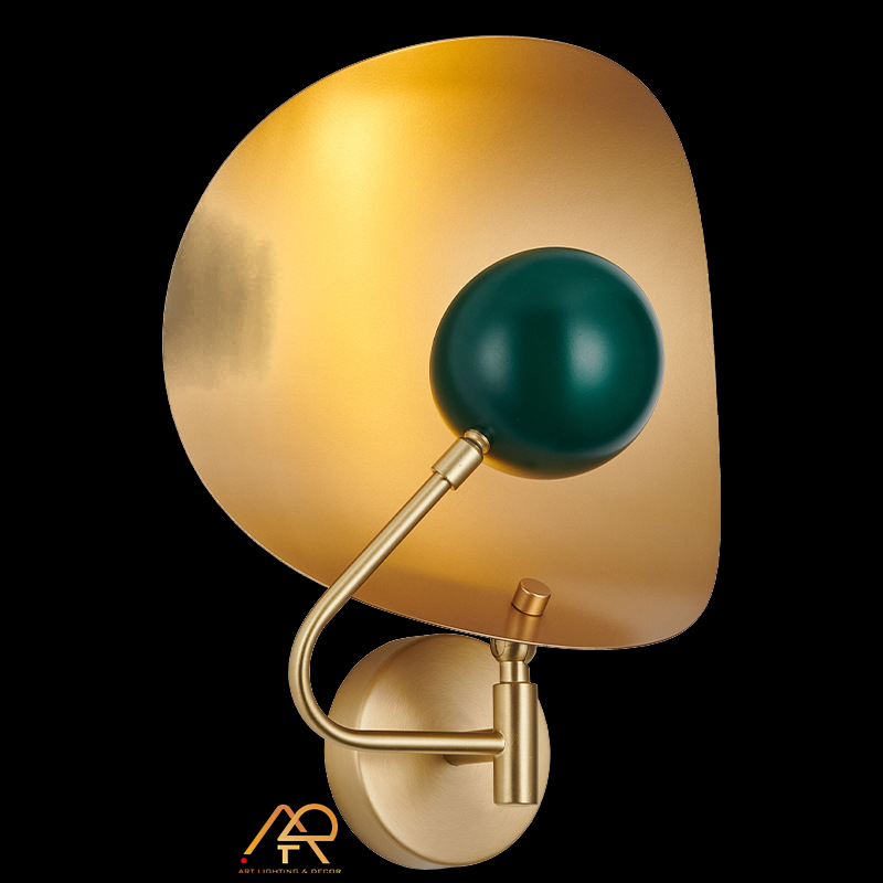 Tô điểm không gian sống với Đèn Tường Nghệ Thuật ART-Vertura, một tuyệt tác kết hợp giữa hình học hiện đại và nghệ thuật tối giản. Thiết kế nổi bật với khối cầu màu xanh lục đậm ấn tượng, nổi bật trên nền kim loại vàng chải mờ tinh xảo. Hệ thống tay đèn được uốn cong mềm mại như một tác phẩm điêu khắc, mang lại chiều sâu thị giác độc đáo.